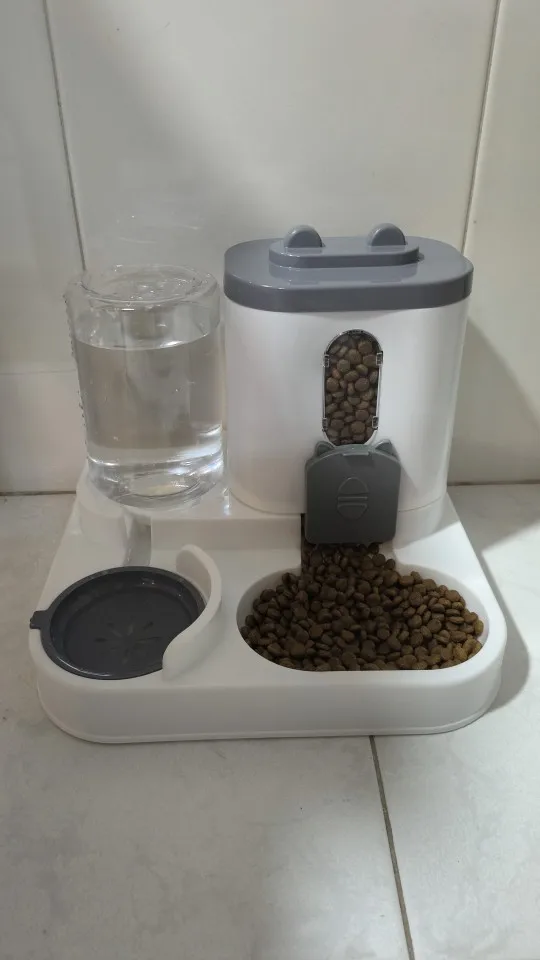 Distributeur Automatique Chat 2-en-1 – Gamelle Nourriture & Fontaine d’Eau - Gris